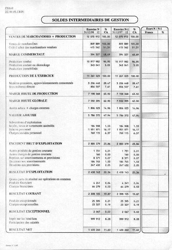 Soldes Intermédiaires de Gestion